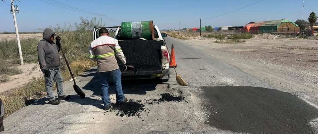 Refuerzan seguridad vial con trabajos de bacheo en el área rural de San Pedro