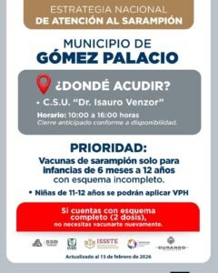 Realiza Durango este lunes jornada de vacunación contra el sarampión