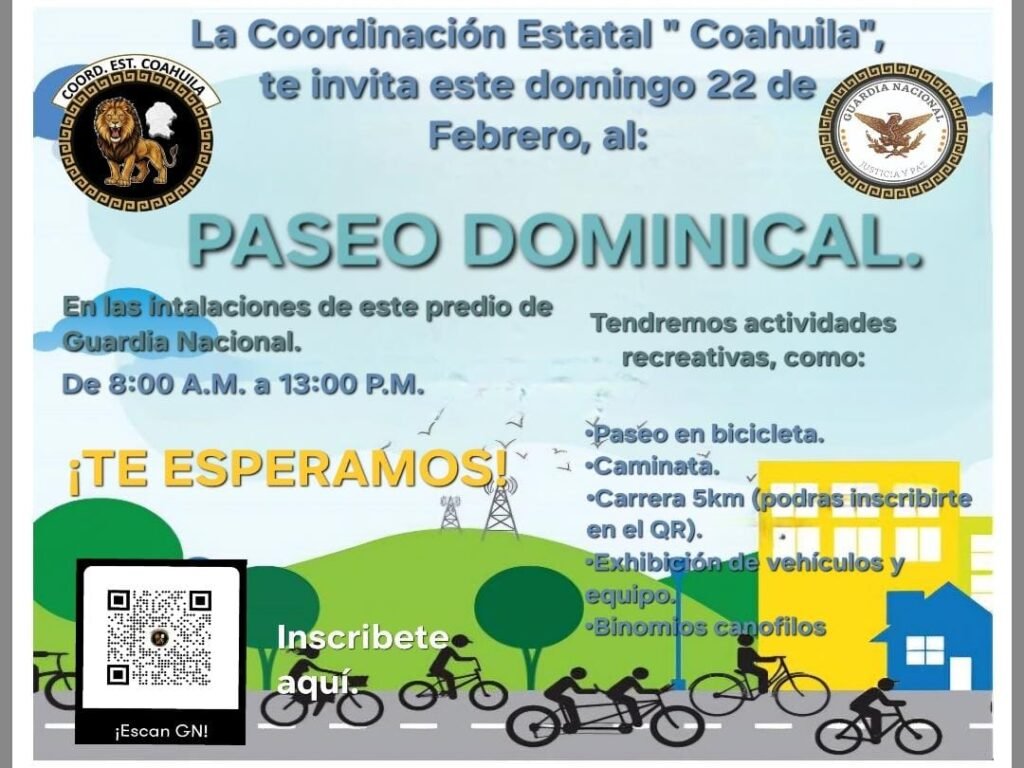 San Pedro, Coahuila.- La Coordinación Estatal Coahuila de la Guardia Nacional invita a toda la comunidad lagunera a su Paseo ...