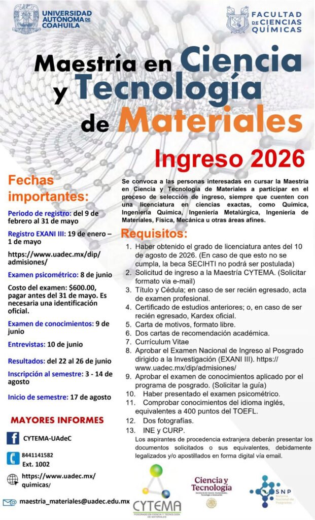 Continúa capacitándote en la UAdeC con la Maestría en Ciencia y Tecnología de Materiales