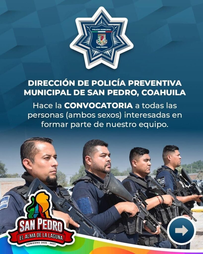 San Pedro, Coahuila.- El Gobierno Municipal continúa con la convocatoria para formar parte de la Dirección de Policía Preventiva Municipal, ...
