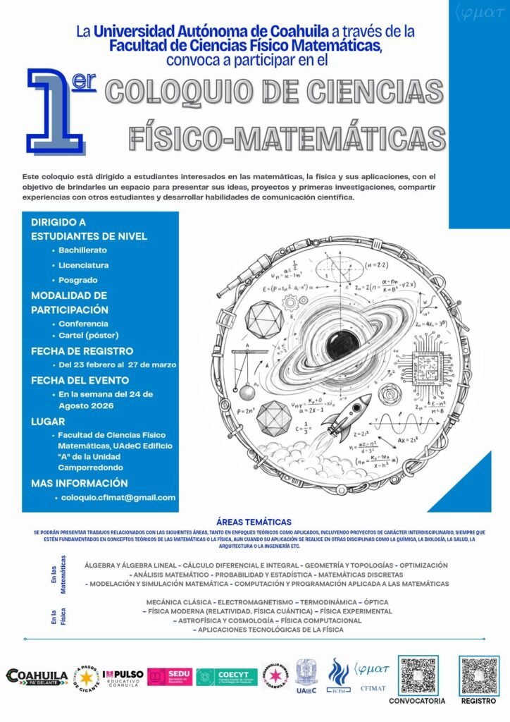 Invita UAdeC a participar en el Primer Coloquio de Ciencias Físico-Matemáticas