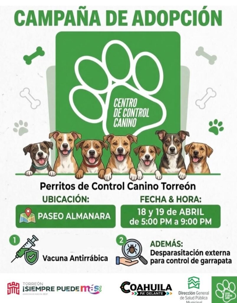 Torreón, Coahuila.- El Centro de Control Canino de Torreón exhorta a la ciudadanía a participar en su próxima campaña de ...