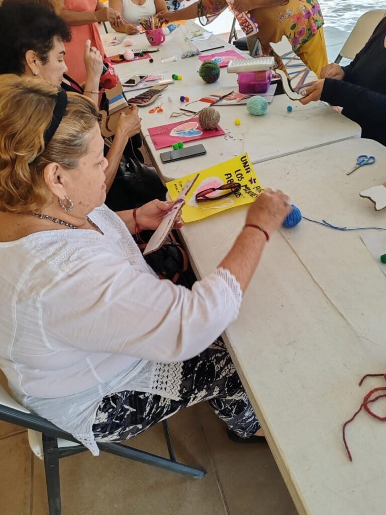 “En Mejora con el Club del Adulto Mayor observamos una riqueza social y cultural, ya que los asistentes pueden tener una consulta médica, les checan sus lentes, entre otras actividades, y, en cultura nosotros les ofrecemos hacer origami, aviones, hasta recetas. Próximamente ofreceremos talleres sobre cómo hacer sus propios guantes de cocina, con puros trozos de tela, sus delantales y manteles individuales”.