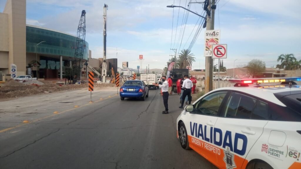 Este sábado aproximadamente desde las nueve horas, los agentes viales abanderaron acciones de bacheo realizadas por personal del Sistema Integral de Mantenimiento Vial (SIMV), sobre el bulevar Independencia, en el tramo que va de la calle Berlín a Cuauhtémoc, una de las secciones donde se realizan las excavaciones para la construcción del nuevo Sistema Vial Cuatro Caminos (SV4C).