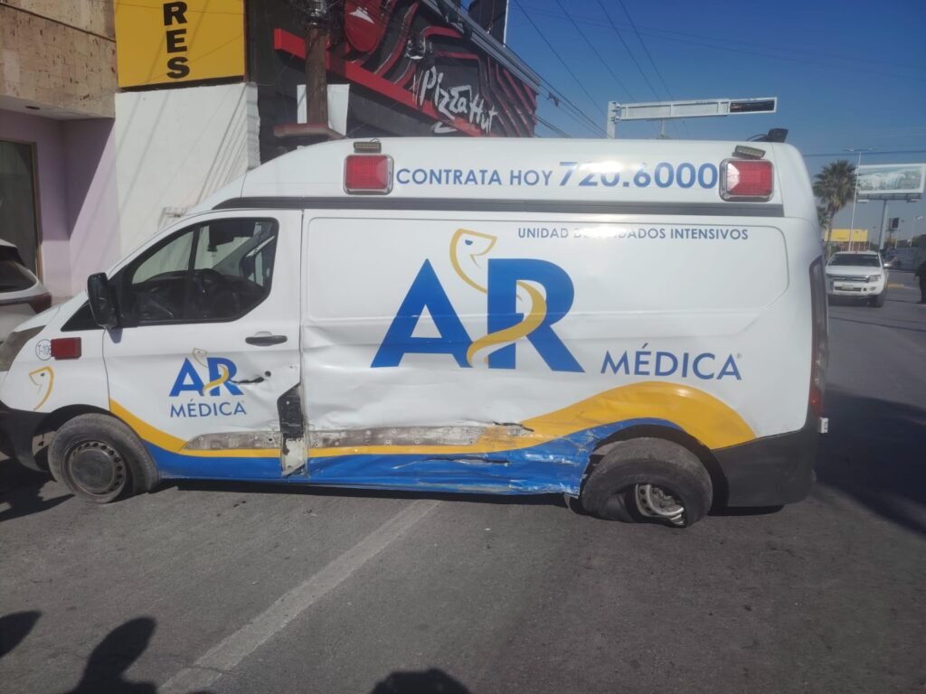 Torreón, Coahuila.- Una ambulancia de AR Médica y una camioneta chocaron aproximadamente a las 10:55 horas de este miércoles en la confluencia de Paseo de la Rosita y Paseo del Olimpo, en la colonia Campestre La Rosita, en la ciudad de Torreón, informaron autoridades.