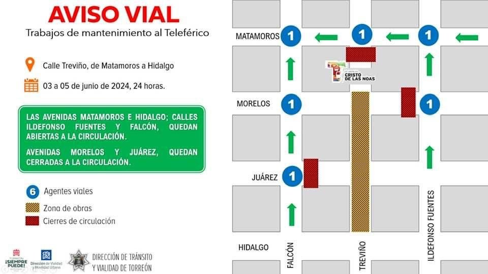 De esta manera, sobre la calle Treviño quedarán cerradas a la circulación las avenidas Morelos y Juárez en tanto se realizan las maniobras de corte.