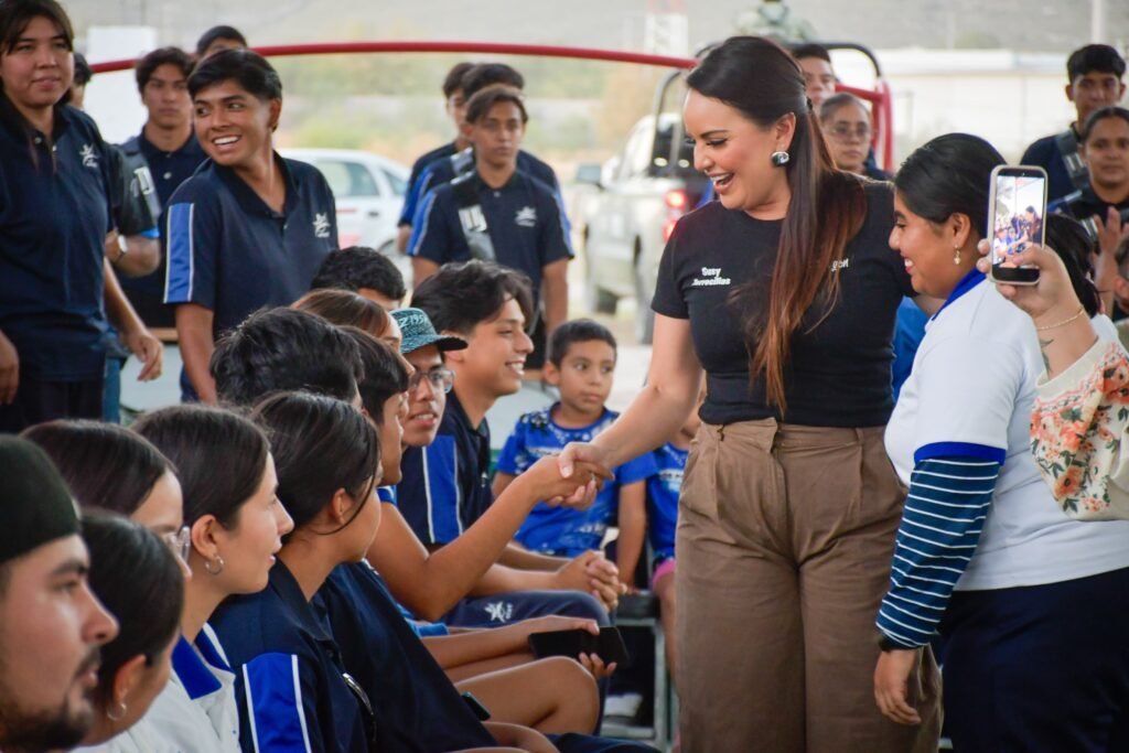 El evento se llevó a cabo en el Domo Público de Las Cuevas, con el respaldo de Omar León Arroyo, encargado del Mando Especial de La Laguna, y del Coronel de Infantería del Estado Mayor, comandante del 72 Batallón de Infantería, Fernando Rosas Clemente, la Presidenta Municipal envió un mensaje claro a los maestros de educación física asignados a las comunidades más alejadas, garantizando seguridad y respaldo institucional para el desarrollo de sus actividades.