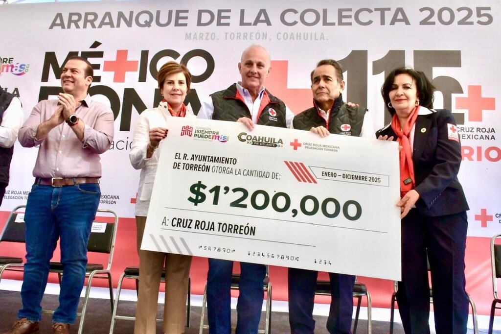 Torreón, Coahuila.- El alcalde Román Alberto Cepeda González presidió el arranque de la colecta anual 2025 “México Dona” de la Cruz Roja, en donde exhortó a los torreonenses a apoyar a la benemérita institución para que siga salvando vidas y dar atención a la población cuando sea necesario.