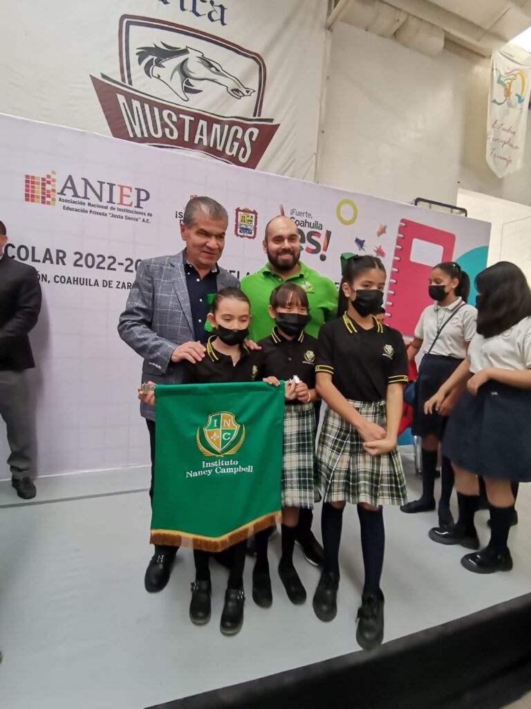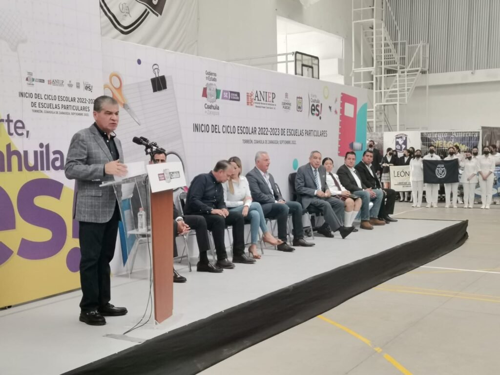 Torreón, Coahuila.- El América de Torreón fue sede de la ceremonia de arranque del ciclo escolar 2022-2023 en escuelas y colegios particulares, evento en el que participaron el gobernador Miguel Ángel Riquelme Solís; el alcalde de Torreón, Román Alberto Cepeda González y el presidente de la Asociación Nacional de Escuelas, profesor Rodolfo Silva Rosales.