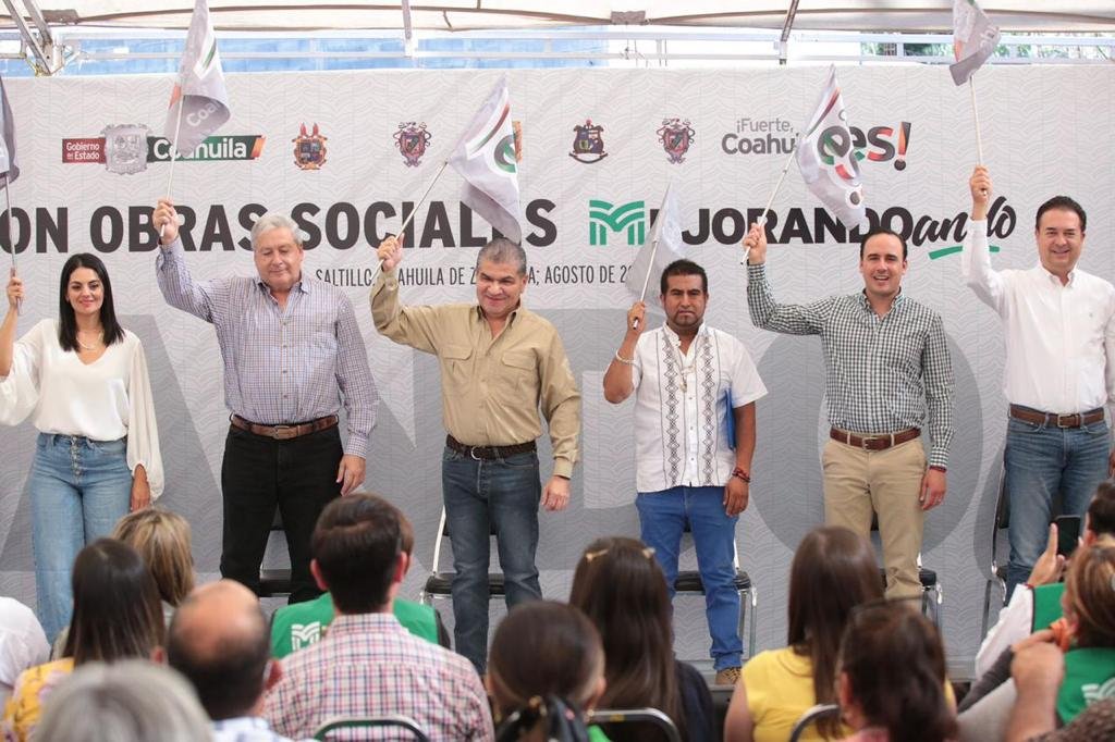 Saltillo, Coahuila.- Con obras sociales que cambian vidas, el gobernador Miguel Ángel Riquelme Solís y el Secretario de Inclusión y Desarrollo Social del Estado, Manolo Jiménez Salinas, pusieron en marcha el Programa “Con Obras Sociales Mejorando-Ando”, para la realización de más de mil acciones prioritarias en beneficio de más de 150 mil coahuilenses, con erogación estatal de 230 millones de pesos.