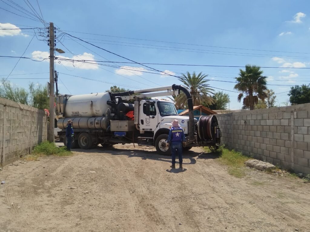 Gómez Palacio, Durango.- El Sistema Descentralizado de Agua Potable y Alcantarillado del Área Rural (SIDEAPAAR) de Gómez Palacio llevó a cabo acciones de desazolve de la red de drenaje sanitario de la comunidad de Venecia.