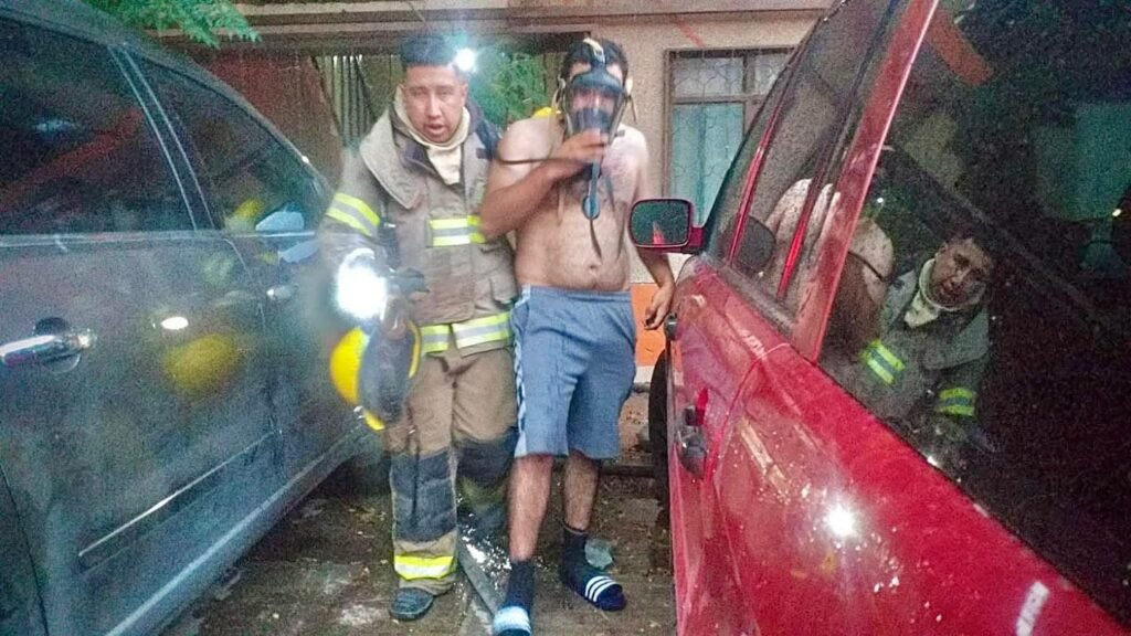 Parámedicos de la Cruz Roja le brindaron atención a Giovanni, descatando afectaciones por quemaduras e intoxicación.