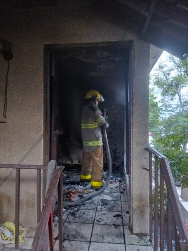 Al arribar los rescatistas en las Máquinas 27 y 30, se procedió a extinguir las llamas y en el área del patio fue localizado el inquilino, quien de inmediato fue puesto a salvo.