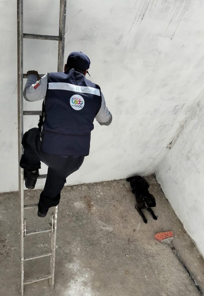 El llamado de auxilio fue recibido a través del sistema de emergencias, por lo que de inmediato se movilizó la unidad CB-19 de rescate para brindar atención a la situación. Al arribar al lugar, los elementos confirmaron que el perrito se encontraba al fondo de la excavación, sin posibilidad de salir por sus propios medios.