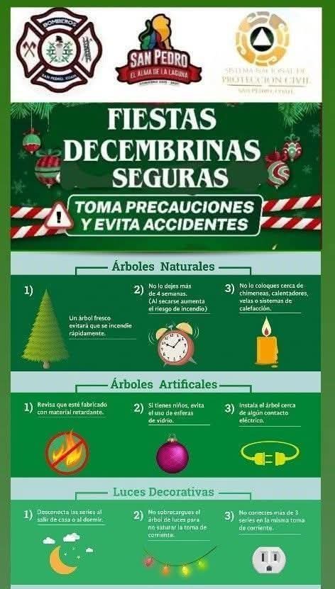 San Pedro, Coahuila.- El Heroico Cuerpo de Bomberos y la Unidad de Protección Civil hacen una serie de recomendaciones para evitar accidentes en el hogar durante la época navideña.