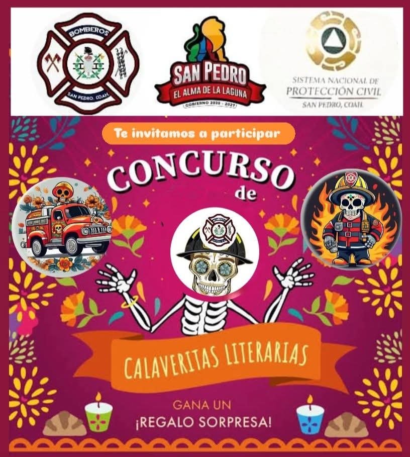 San Pedro, Coahuila.- Con la finalidad de preservar nuestras tradiciones, el Heroico Cuerpo de Bomberos y Protección Civil invitan al concurso de calaveras literarias a todos los niños de cuarto a sexto grado de primaria.