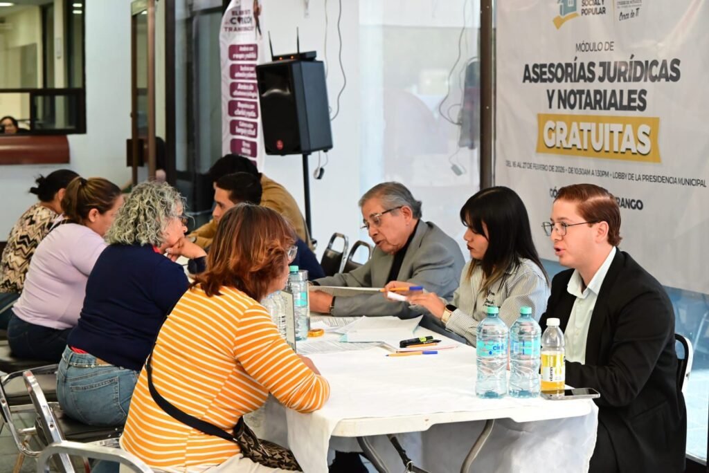 Gómez Palacio, Durango.- El Ayuntamiento de Gómez Palacio puso en marcha la Jornada de Asesoría Jurídica y Notarial gratuita en coordinación con el Colegio de Notarios Públicos del Estado de Durango, con el objetivo de facilitar que las familias regularicen su patrimonio y obtengan seguridad jurídica sobre sus propiedades.