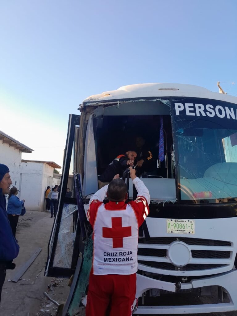 Y en cuanto a los daños materiales que arrojó el siniestro, se dio a conocer que el camión de personal presentó daño en su parte frontal y resultó con un cristal roto.