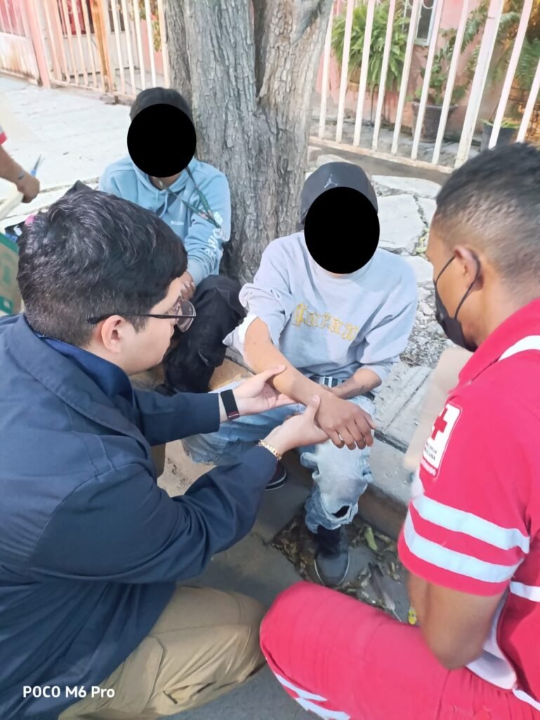 Parámedicos de la Cruz Roja Mexicana brindaron atención a Francisco Javier González Calvillo, de 17 años de edad, quien sufrió fractura de muñeca; así como a Jorge Luis Hernández Rodríguez, de 16 años, por posible fractura también de muñeca.
