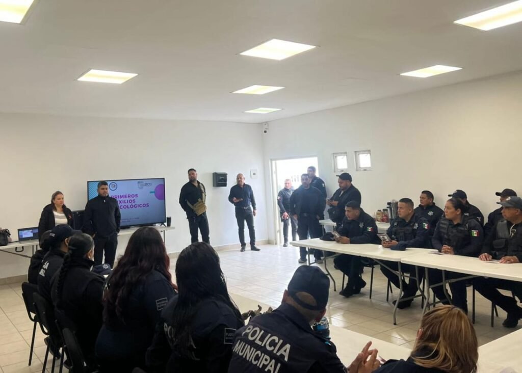 Lerdo, Durango.- El Instituto Municipal de la Mujer (IMM) en Lerdo, brindó una capacitación en Primeros Auxilios Psicológicos al personal de la Dirección de Seguridad Pública Municipal (DSPM), ya que son, con frecuencia, los primeros respondientes en situaciones de emergencias.