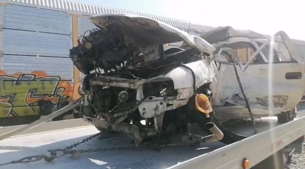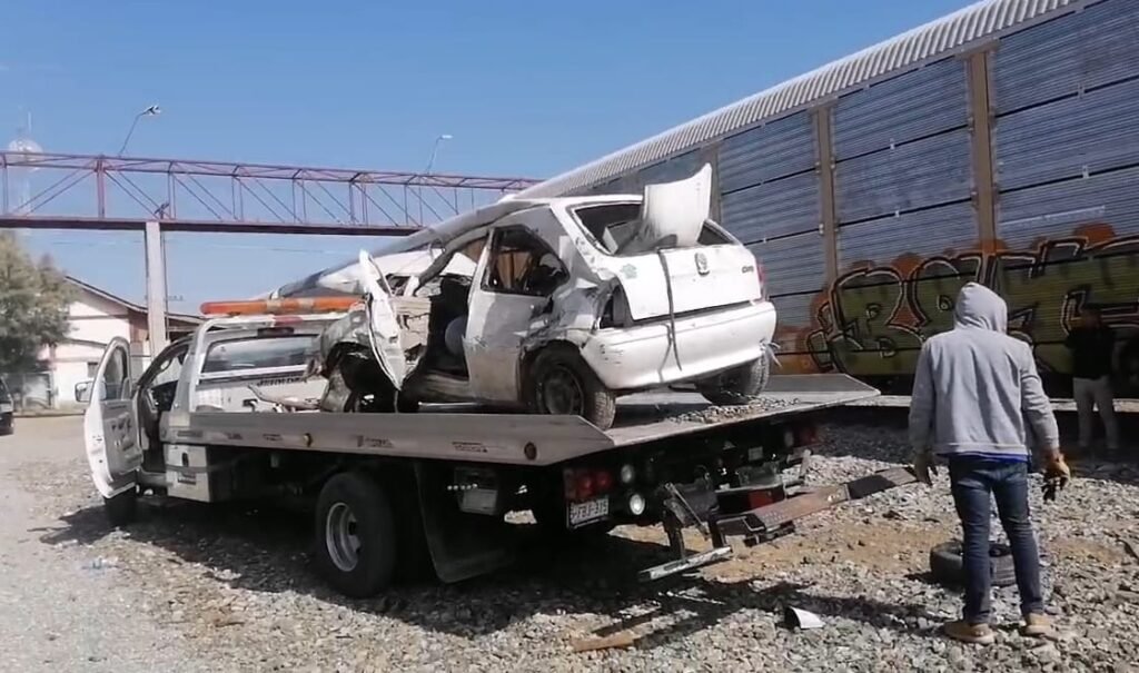 San Pedro, Coahuila.- Un vehículo que intentó ganarle el paso al tren, fue embestido y arrastrado 20 metros cerca de la antigua estación del ferrocarril, una persona resultó lesionada.