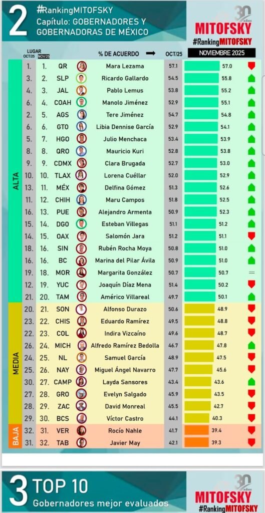De acuerdo a la consultora Cipreso, en su evaluación de la gestión pública estatal en el país, y de acuerdo a su ránking anual y en el histórico de este 2025, Manolo Jiménez Salinas destacó en el primer lugar nacional como el gobernador mejor evaluado y con mayor aprobación ciudadana.