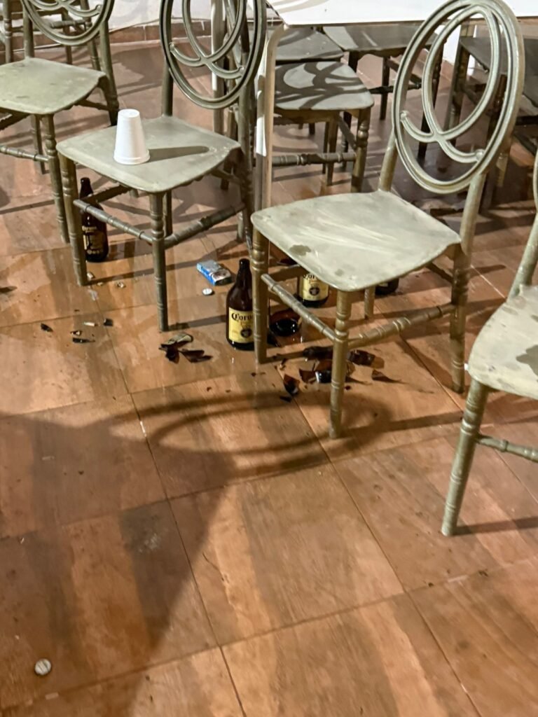 Durante la inspección se detectaron múltiples irregularidades, entre las que destacan: Falta de licencia de funcionamiento,       Falta de permiso especial para la venta o consumo de bebidas alcohólicas, Presencia de menores de edad ingiriendo bebidas alcohólicas, Falta de extintores en el lugar, Falta de certificado de fumigación, Obstrucción de las labores de inspección y Agresiones a los inspectores actuantes por parte de asistentes al evento.