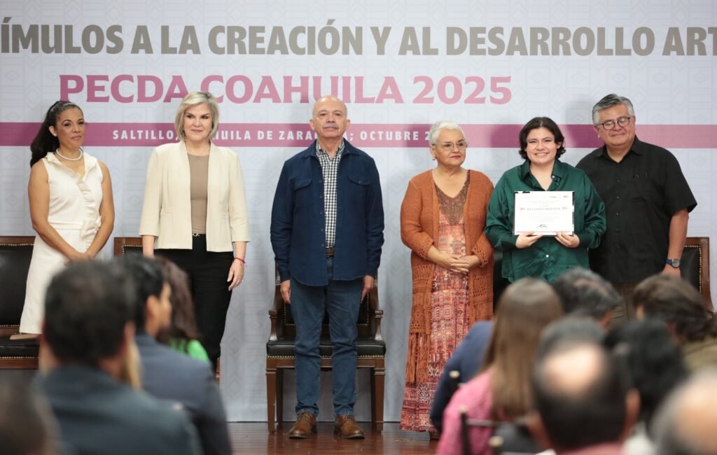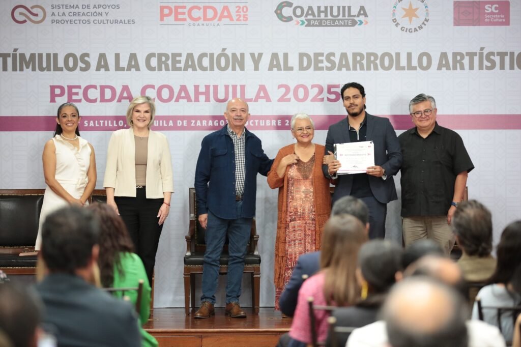Saltillo, Coahuila.- El Gobierno del Estado de Coahuila de Zaragoza, a través de la Secretaría de Cultura, en colaboración con la Secretaría de Cultura del Gobierno de México y el Sistema de Apoyos a la Creación y Proyectos Culturales (SACPC), realizó la entrega de los estímulos del Programa de Estímulo a la Creación y Desarrollo Artístico (PECDA) Coahuila 2025, con el propósito de fortalecer e impulsar el trabajo de las y los creadores coahuilenses.