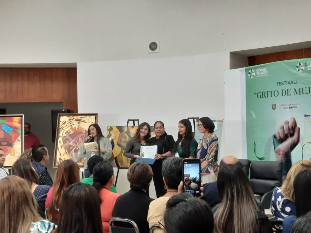 Gómez Palacio, Durango.- La mañana de ayer se llevó a cabo el Festival Internacional “Grito de Mujer”, evento multidisciplinario en el cual hubo interesantes conferencias, exposiciones de arte, lecturas, números musicales y un reconocimiento especial 10 a mujeres del campo gomezpalatino por su aporte altruista en beneficio de sus comunidades
