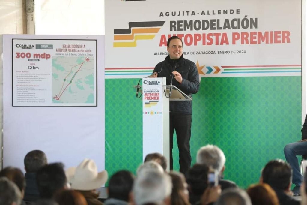 Con una inversión superior a 300 millones de pesos, puso en marcha la modernización de la Autopista y reiteró que es una obra de trascendencia para las regiones Carbonífera, Cinco Manantiales y Norte y permitirá agilizar también el tránsito de visitantes de otros estados del país y del extranjero por la frontera de Coahuila: “la más segura del país”, afirmó.