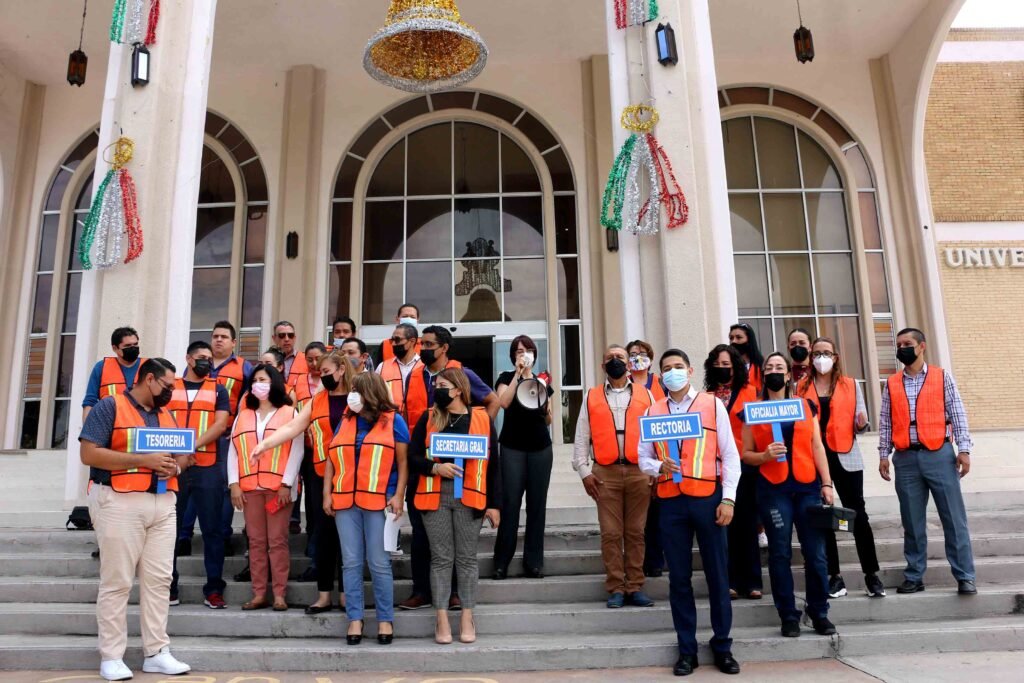 Saltillo, Coahuila.- Para conmemorar el Día Nacional de Protección Civil, la Universidad Autónoma de Coahuila realizó un simulacro de evacuación en el edificio de la Rectoría, con el objetivo de que el personal conociera y realizara lo protocolos de desalojo del edificio.