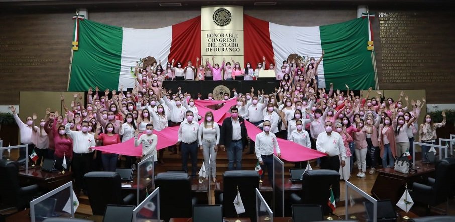 Durango, Durango.- En el inicio del mes rosa, la presidenta de la Junta de Gobierno y Coordinación Política, Sandra Amaya Rosales, entregó cubre bocas a las trabajadoras del Poder Legislativo, como una forma de concientizarlas en la prevención y detección del cáncer de mama.