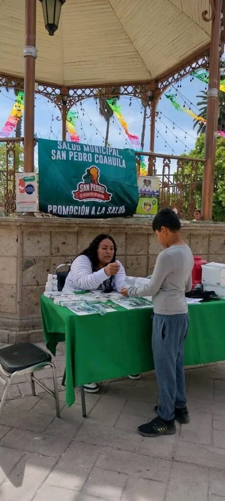 San Pedro, Coahuila.- Personal del Departamento de Salud Municipal conmemoró el «Día Mundial de la Salud» instalando un stand en la plaza principal, para brindar orientación a las personas que pasaran por ese lugar.