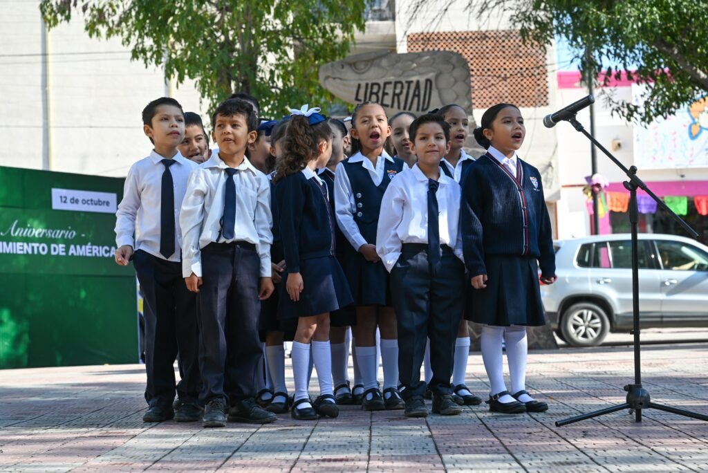 Luego de los honores a la bandera y cantar al unísono el Himno Nacional Mexicano y el Himno de Durango, los alumnos del colegio primo verdad compartieron la reseña histórica, en la que narraron el viaje del marino genovés Cristóbal Colón, quien viajaba y lideraba la expedición de las carabelas La Niña, La Pinta y La Santa María, en busca de la India y mercancías para comerciar, cuando llegó a América en 1492.