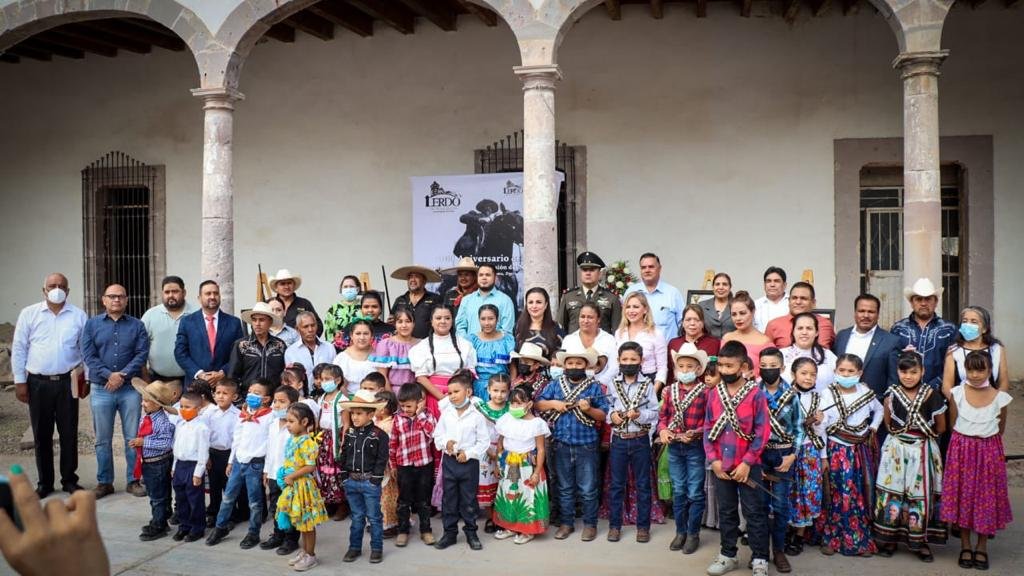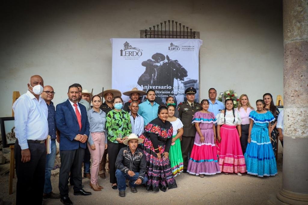 Lerdo, Durango.- Frente a la Ex Hacienda del Ejido La Goma, el Ayuntamiento de Lerdo a través de la Dirección de Educación, llevó a cabo un acto cívico para conmemorar el paso del General Francisco Villa por el Ejido La Goma y la conformación de la División del Norte, en el marco del 109 aniversario.