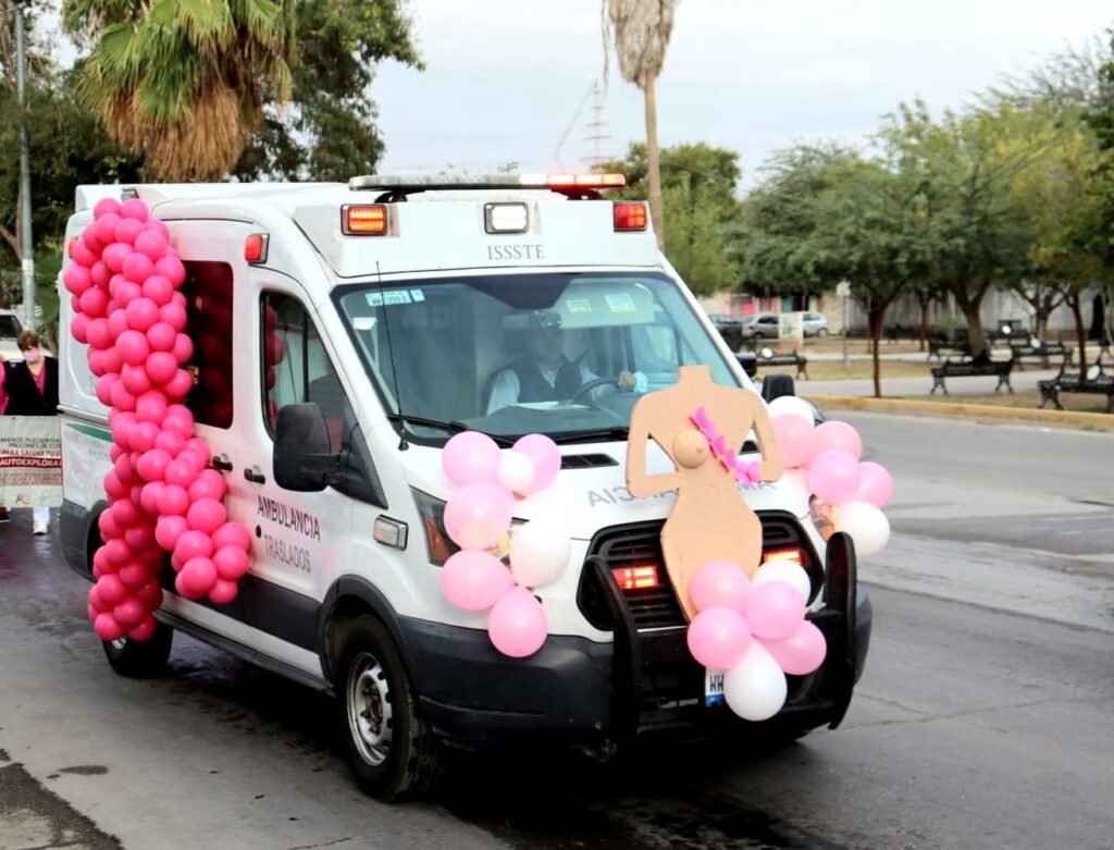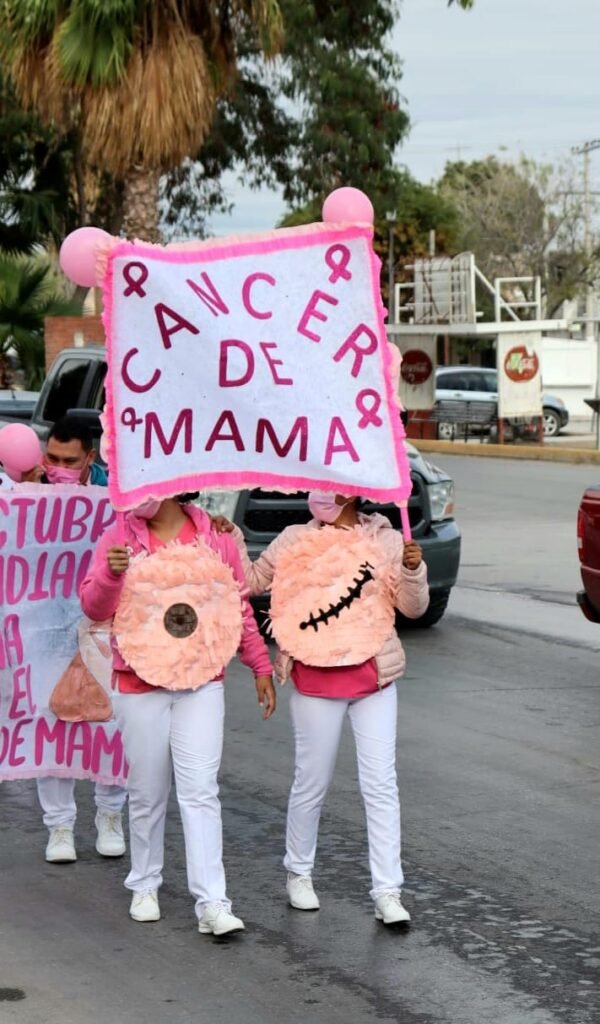 San Pedro, Coahuila.- Para conmemorar el Día Internacional de la Lucha contra el Cáncer de Mama, y para sensibilizar y concienciar a las mujeres sobre la importancia de realizarse la exploración regularmente, se llevó a cabo un desfile conmemorativo, así como una plática de orientación para la detección oportuna de este padecimiento que se presenta mayormente en las mujeres.