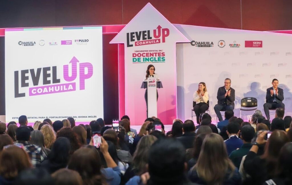Saltillo, Coahuila.- Como parte del programa integral Level Up, el Gobierno del Estado, a través de la Oficina Inspira Coahuila, y en coordinación con la Secretaría de Educación, llevaron a cabo el Encuentro Estatal de Docentes de Inglés, en el cual participaron más de 500 maestras y maestros de todas las regiones y de los diferentes niveles educativos, desde primaria, hasta universidad.