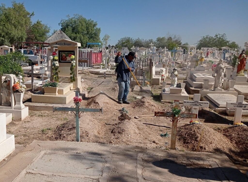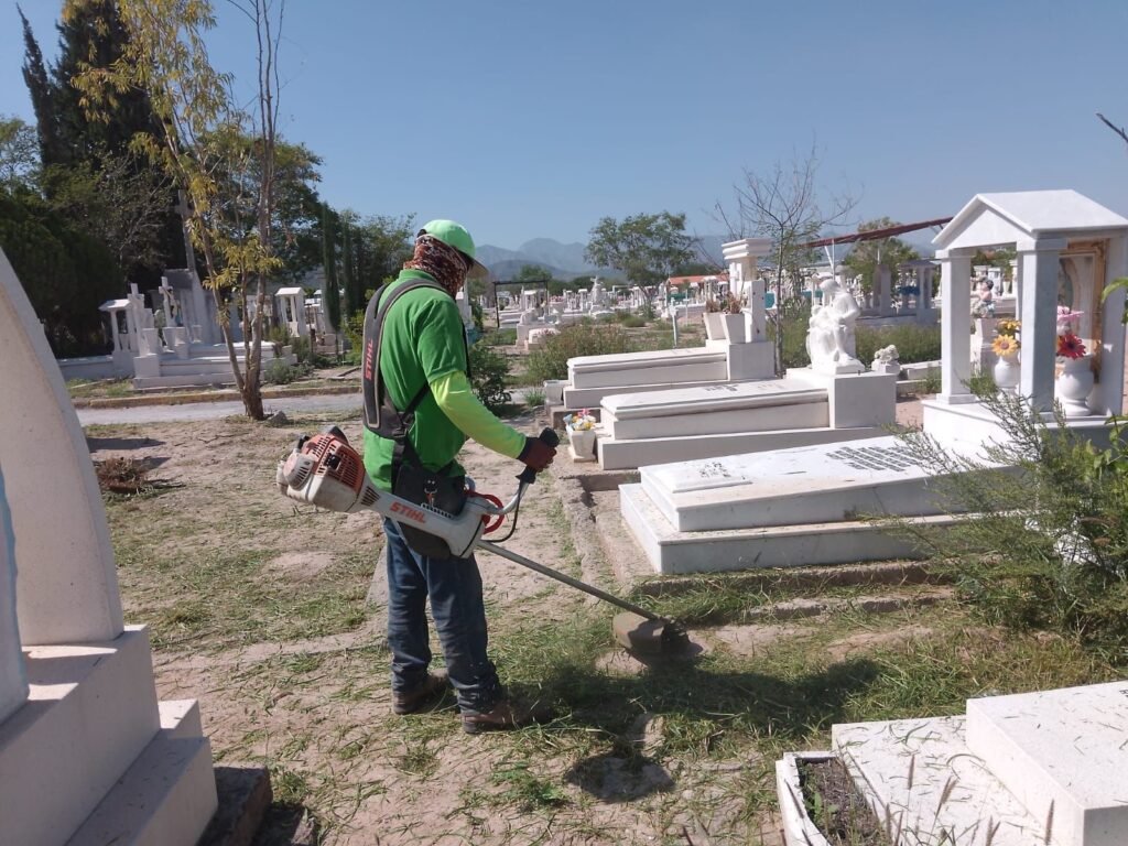 Manuel Lavín, titular del departamento de Parques y Jardines, comentó que el personal a su cargo realiza labores de limpieza de manera continua a través de las brigadas en el panteón principal, con recolección de escombro, deshierbe, poda y mantenimiento a las pilas de agua.