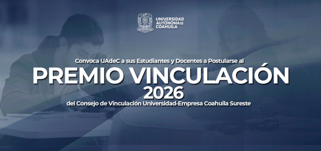 Saltillo, Coahuila.- La Universidad Autónoma de Coahuila al pertenecer al Consejo de Vinculación Universidad-Empresa Coahuila Sureste, convoca a sus estudiantes y docentes a postularse al Premio Vinculación 2026 con fecha límite el 1 de mayo, con el que se reconoce el desempeño académico, el compromiso social, las actividades de vinculación, la calidad humana de estudiantes y docentes de las Instituciones de Educación Superior pertenecientes al Consejo.