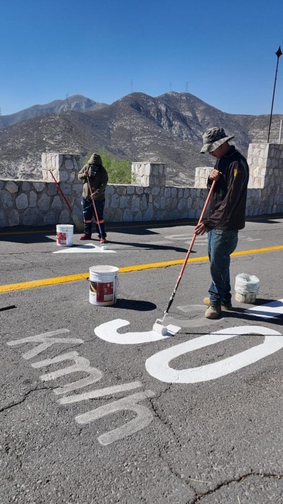 Entre los trabajos realizados, se reforzó con pintura la delimitación de la cordonería, carriles, cajones de estacionamiento, señalamiento de velocidad, zona peatonal y cajones azules.
