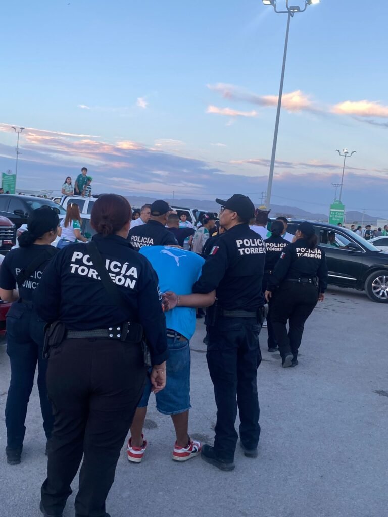 Torreón, Coahuila.- Más de 18 integrantes de la porra del Club Monterrey fueron detenidos la tarde del domingo tras verse presuntamente involucrados en agresiones físicas contra aficionados laguneros al término del partido contra Santos Laguna, en el Territorio Santos Modelo, informó la Dirección de Seguridad Pública Municipal (DSPM).