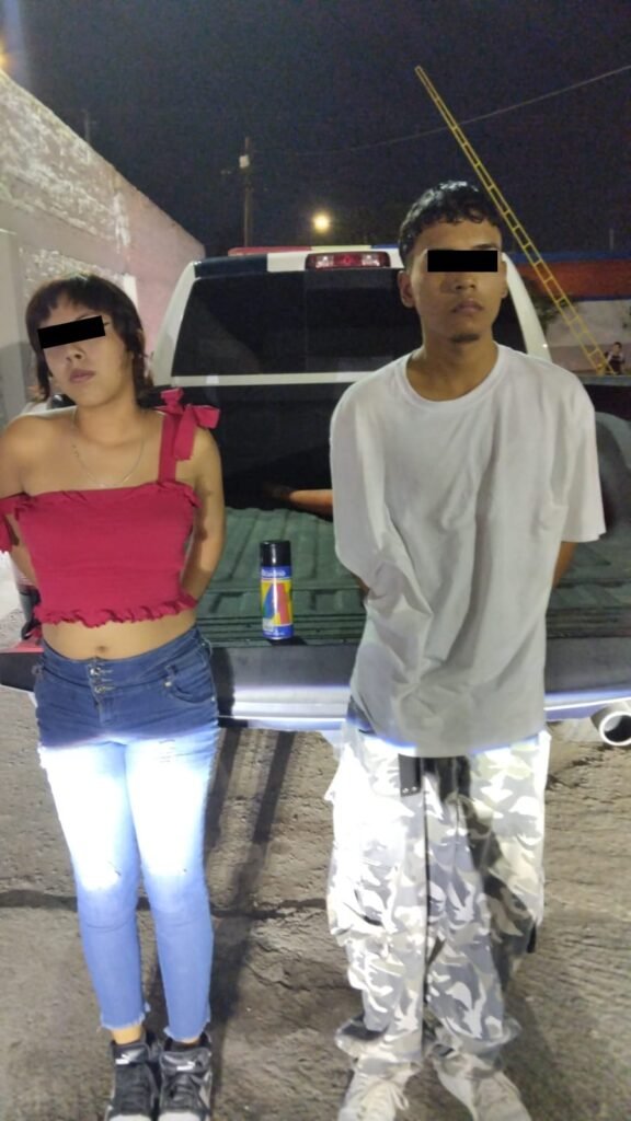 Gómez Palacio, Durango.- Elementos de la Dirección de Seguridad Pública y Protección Ciudadana de Gómez Palacio, mediante recorrido de prevención y vigilancia, lograron capturar a un par de adolescentes que se encontraban dañando la imagen del municipio al realizar un grafiti, por lo que fueron detenidos y puestos a disposición del juez cívico.