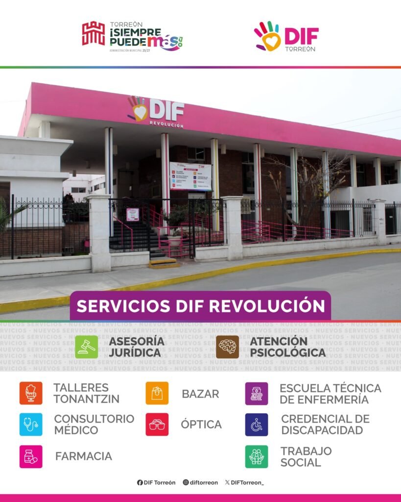Los servicios se brindan en el DIF que se ubican en bulevar Revolución número 639 poniente, colonia Centro. Para mayores informes o para agendar una cita, la ciudadanía puede comunicarse al teléfono 871 893 11 23.