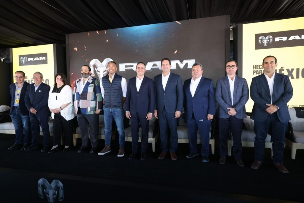 Saltillo, Coahuila.- El gobernador Manolo Jiménez Salinas acompañó a directivos de la empresa Stellantis en el lanzamiento del nuevo portafolio de RAM México, vehículos que se producirán en Saltillo para el mercado nacional, con lo que se fortalecen sus ventas en México y en diversas partes del mundo.