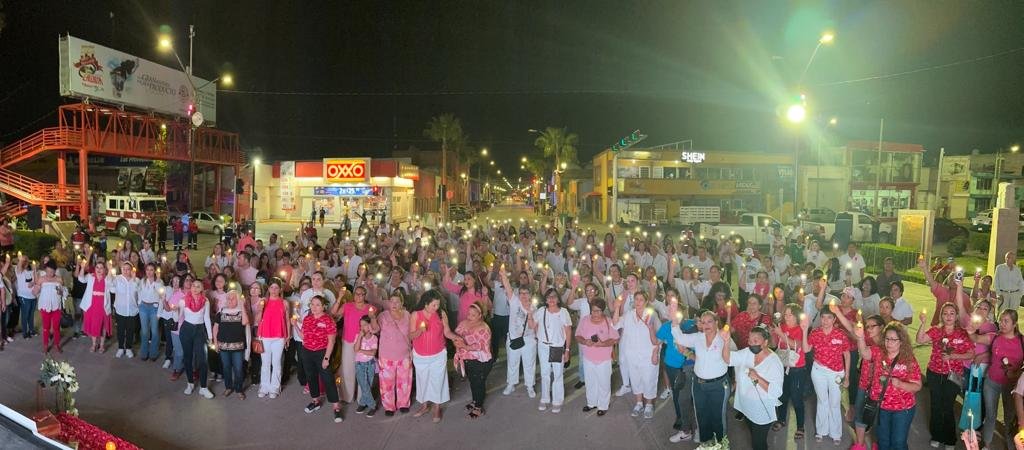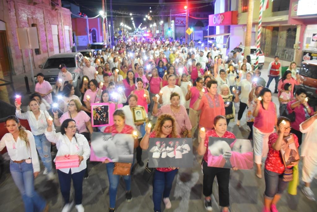 Más de 150 mujeres con vela en mano, acompañadas de amigos y familiares, caminaron por el Paseo Independencia desde la Plaza de Armas hasta la explanada de la Presidencia Municipal, buscando dar visibilidad a aquellas mujeres que están en este momento luchando contra el cáncer de mama así como aquellas que desafortunadamente perdieron la batalla.