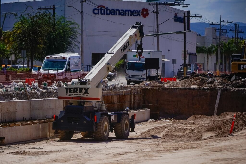 Señaló que una vez que se terminaron los pilotes, que son las columnas y luego las bases, los muros, el muro pantalla donde se sienta la trabe, “ahora ustedes pueden ver que estamos colocando las trabes y arriba de éstas. Entre jueves y viernes vamos a vaciar el piso de concreto”.