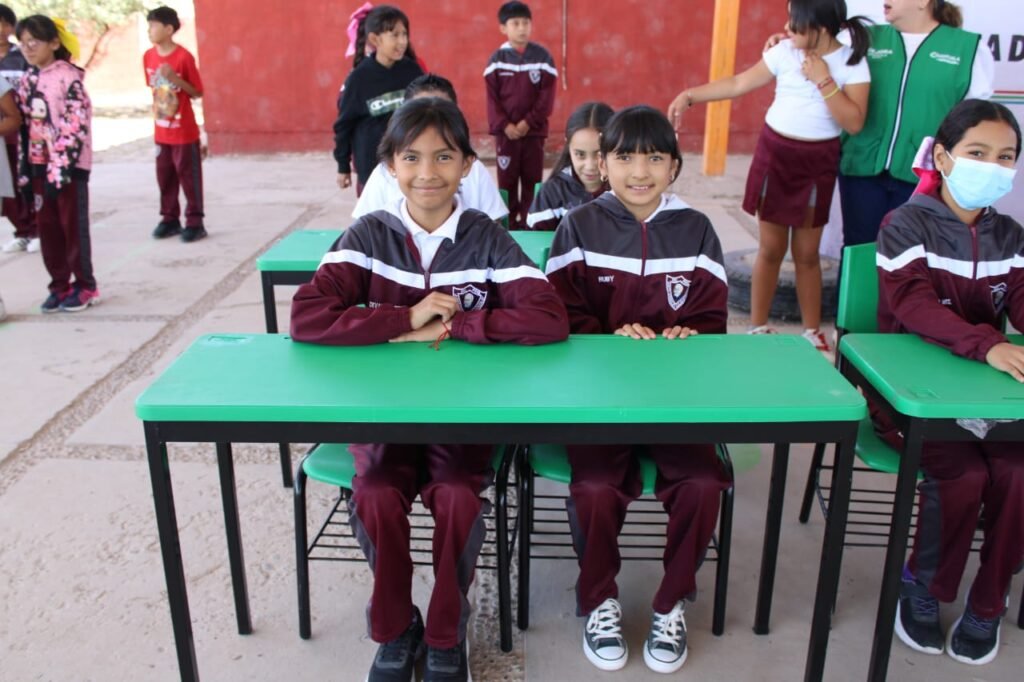 San Pedro, Coahuila.- Con el compromiso de fortalecer la educación en las comunidades rurales, la alcaldesa Brenda Cecilia Güereca Hernández realizó la entrega de mobiliario en las escuelas primarias «Justo Sierra», del ejido Alejo González y «Jesús Flores Magón», del ejido LázaroCárdenas.