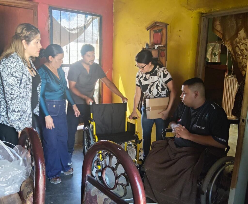 Lerdo, Durango.- Con el propósito de mejorar la calidad de vida de las personas con discapacidad, el Instituto Municipal para el Desarrollo y la Inclusión Lerdo, en coordinación con la Unidad Básica de Rehabilitación (UBR), realizó la entrega de sillas de ruedas en distintas comunidades del municipio.