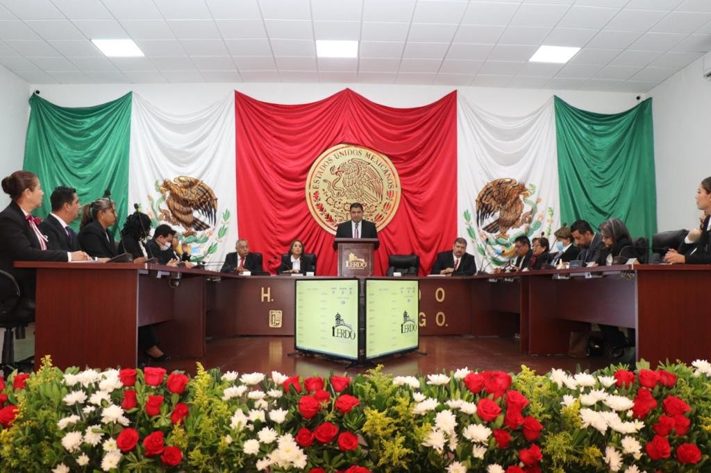 La Sesión Solemne de Cabildo se llevó a cabo en la Sala Lic. Miguel Lerdo de Tejada, al interior del Salón Azul de la Presidencia Municipal, en punto de las 9:00 hrs, con un único punto, conforme a lo establecido en el artículo 169 de la Constitución Política del Estado Libre y Soberano de Durango; artículo 35 fracción III y 52 fracción V de la Ley Orgánica del Municipio Libre del Estado de Durango; y artículo 18 fracción V y 36 del Reglamento Interno del Republicano Ayuntamiento del Municipio de Lerdo, Durango.